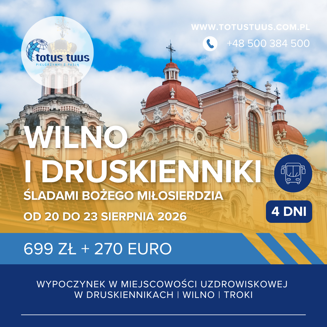 Zwiedzanie Wilna: Kościół św. Teresy, Kościół Świętego Ducha (nawiedził go Jan Paweł II), Kościół Unicki, Klasztor Bazylianów, Cerkiew św. Ducha, plac ratuszowy z Ratuszem Wileńskim. Msza Św. w Świątyni Miłosierdzia (tam, gdzie jest oryginalny obraz Jezu Ufam Tobie). Cmentarz na Rossie.