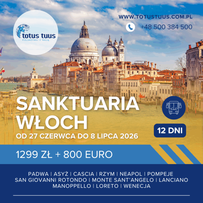 Pielgrzymka z Biurem Podróży “Cały Twój”. Niezapomniane doświadczenie duchowe śladami świętych. Najważniejsze miejsca pielgrzymkowe we Włoszech. Malownicze krajobrazy i rejs w Wenecji.